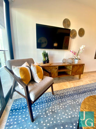 Immerse yourself in a celebration of Caribbean-inspired elegance with this vibrant double-level penthouse, where every detail reflects joyful sophistication. Bathed in natural light and framed by breathtaking ocean views, the space is a harmonious blend of contemporary design and artistic flair, showcasing chic furnishings and a colorful palette that invigorates the senses. The refined interiors boast spacious living areas adorned with luxurious finishes, while carefully curated artwork adds a playful touch, creating an atmosphere that is both polished and inviting. This stunning penthouse is the epitome of refined living, perfectly capturing the essence of coastal vibrancy.